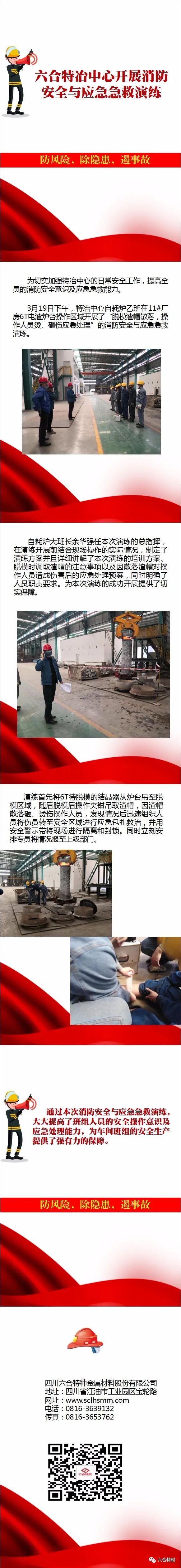 3月19日下午,特冶中心自耗炉乙班在11#厂房6T电渣炉台操作区域开展了“脱模渣帽散落,操作人员烫、砸伤应急处理”的消防安全与应急急救演练。