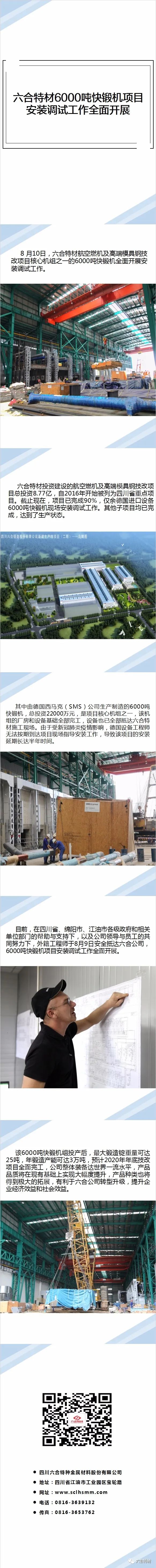 8 月10日,六合特材航空燃机及高端模具钢技改项目核心机组之一的6000吨快锻机全面开展安装调试工作。