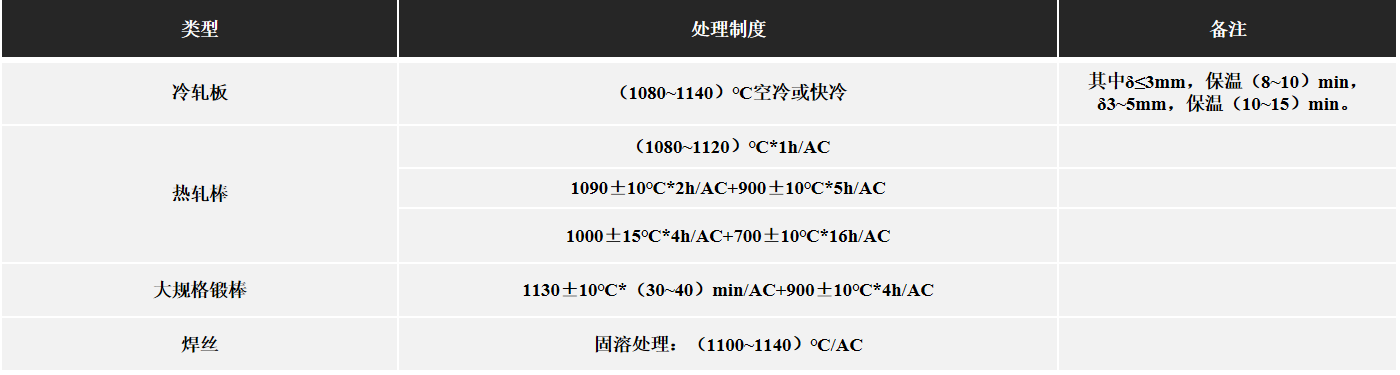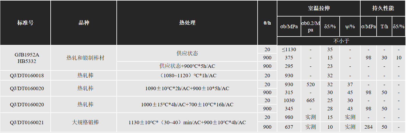 Excerpted from HB/Z140, QJ/DT0160018, QJ/DT0160020, QJ/DT0160011; heat treatment procedures for each variety are: