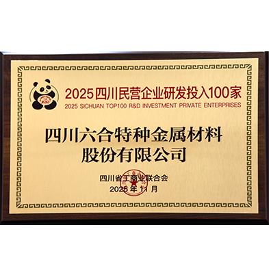 2025 Top 100 Sichuan Private Enterprises in R&D Investment