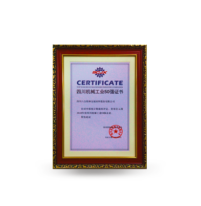 • Certificate for 2021 Top 50 Sichuan Machinery Industry Enterprise